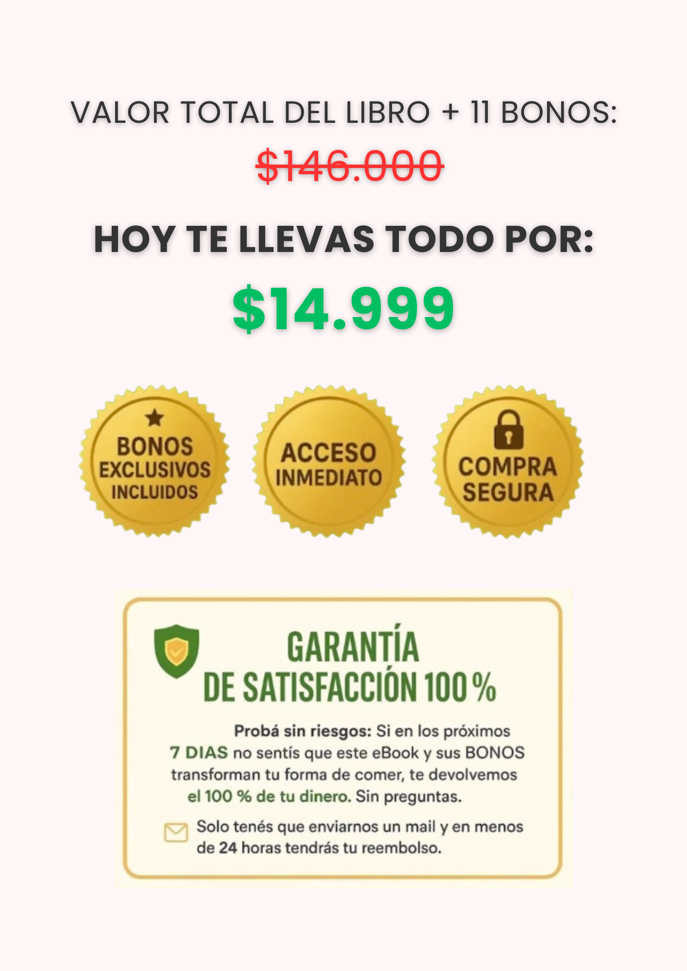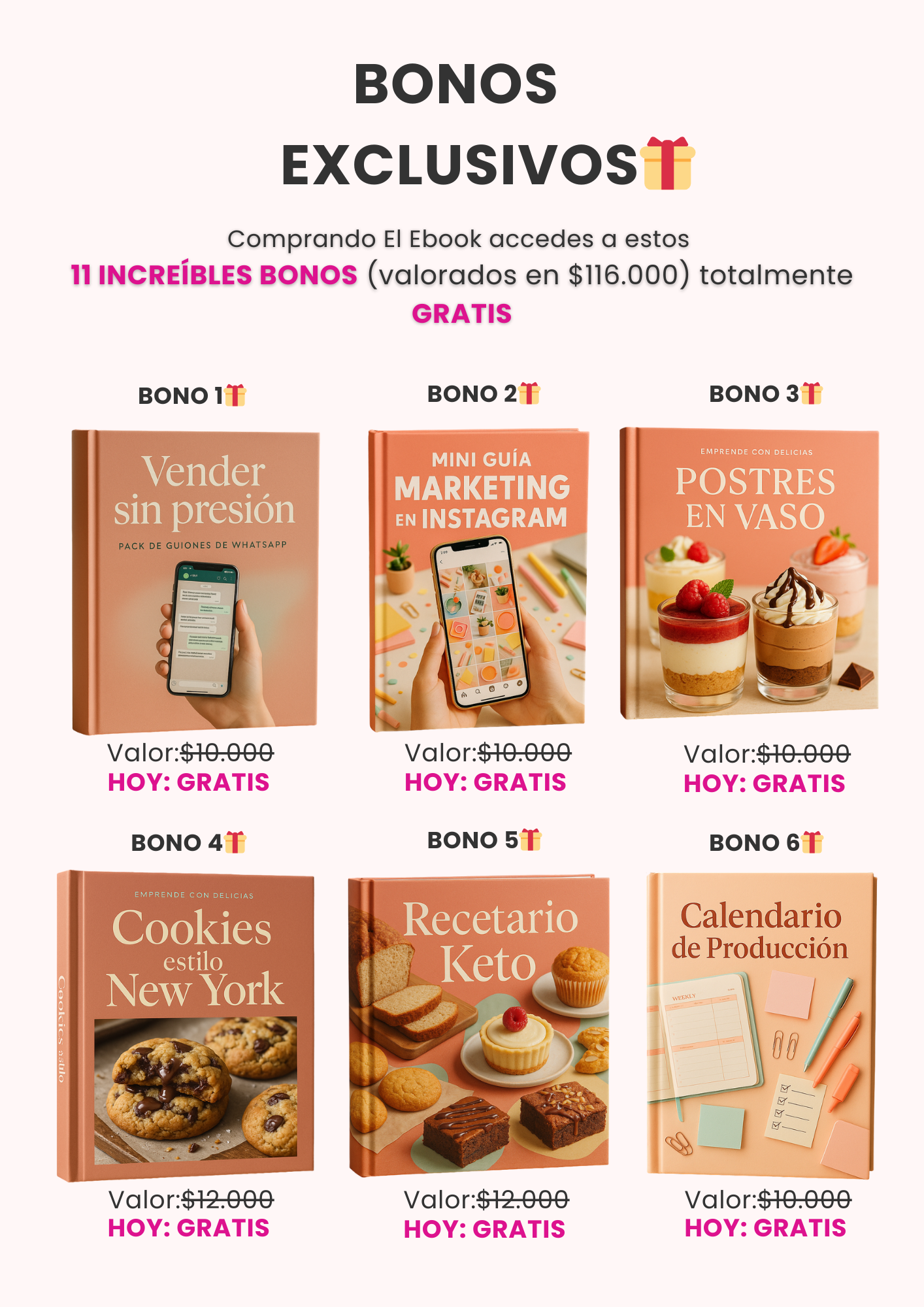 — Valentina D. (Tucumán)"Ya recuperé lo que invertí en el ebook. Empecé a hacer mis delicias los fines de semana y la gente me pide más. ¡Gracias por inspirarme!"