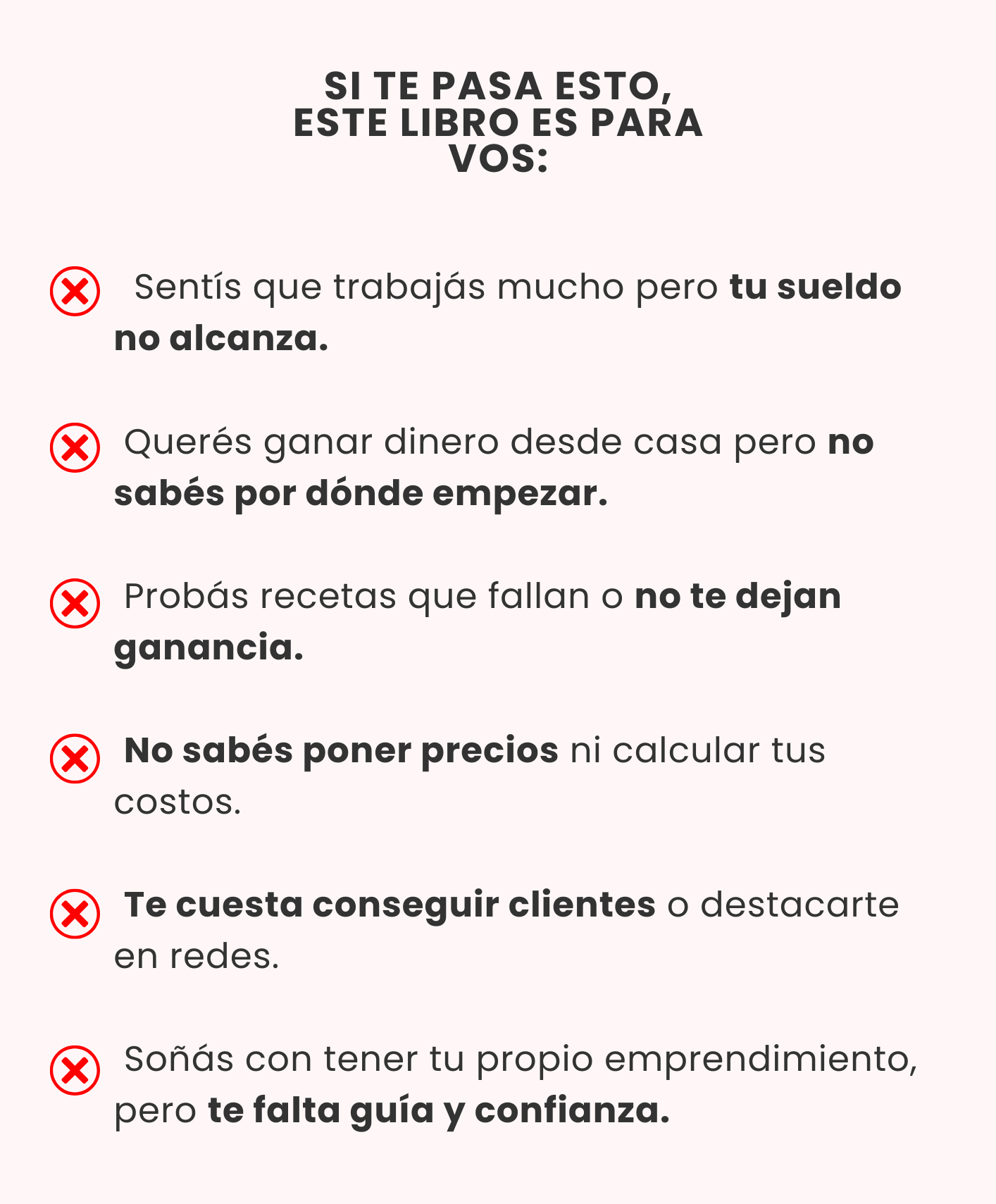 "Lo compré sin saber si me iba a servir y hoy tengo mis primeras clientas fijas. El ebook me dio estructura y confianza para arrancar, ¡valió cada peso!"