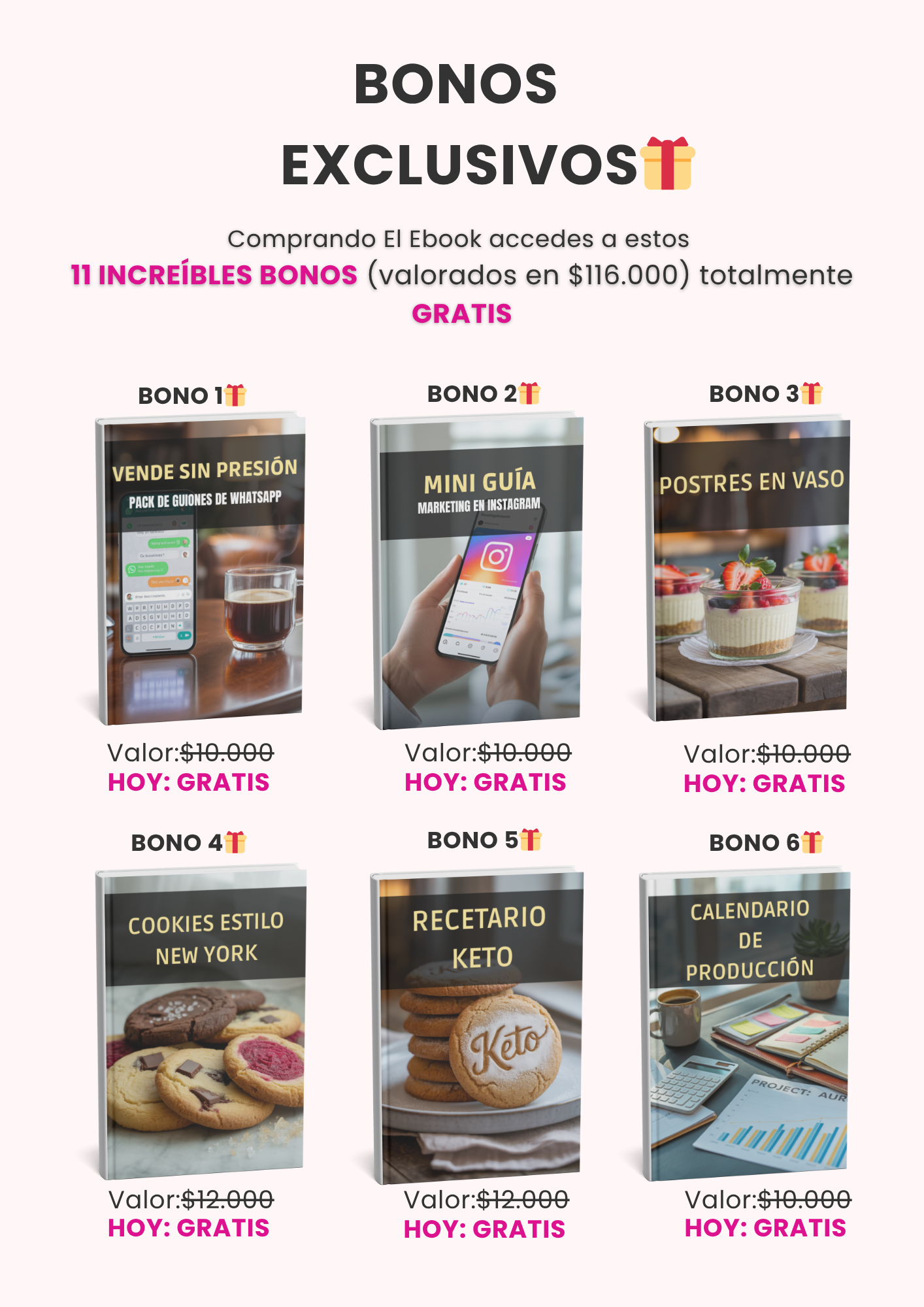 — Valentina D. (Tucumán)"Ya recuperé lo que invertí en el ebook. Empecé a hacer mis delicias los fines de semana y la gente me pide más. ¡Gracias por inspirarme!"